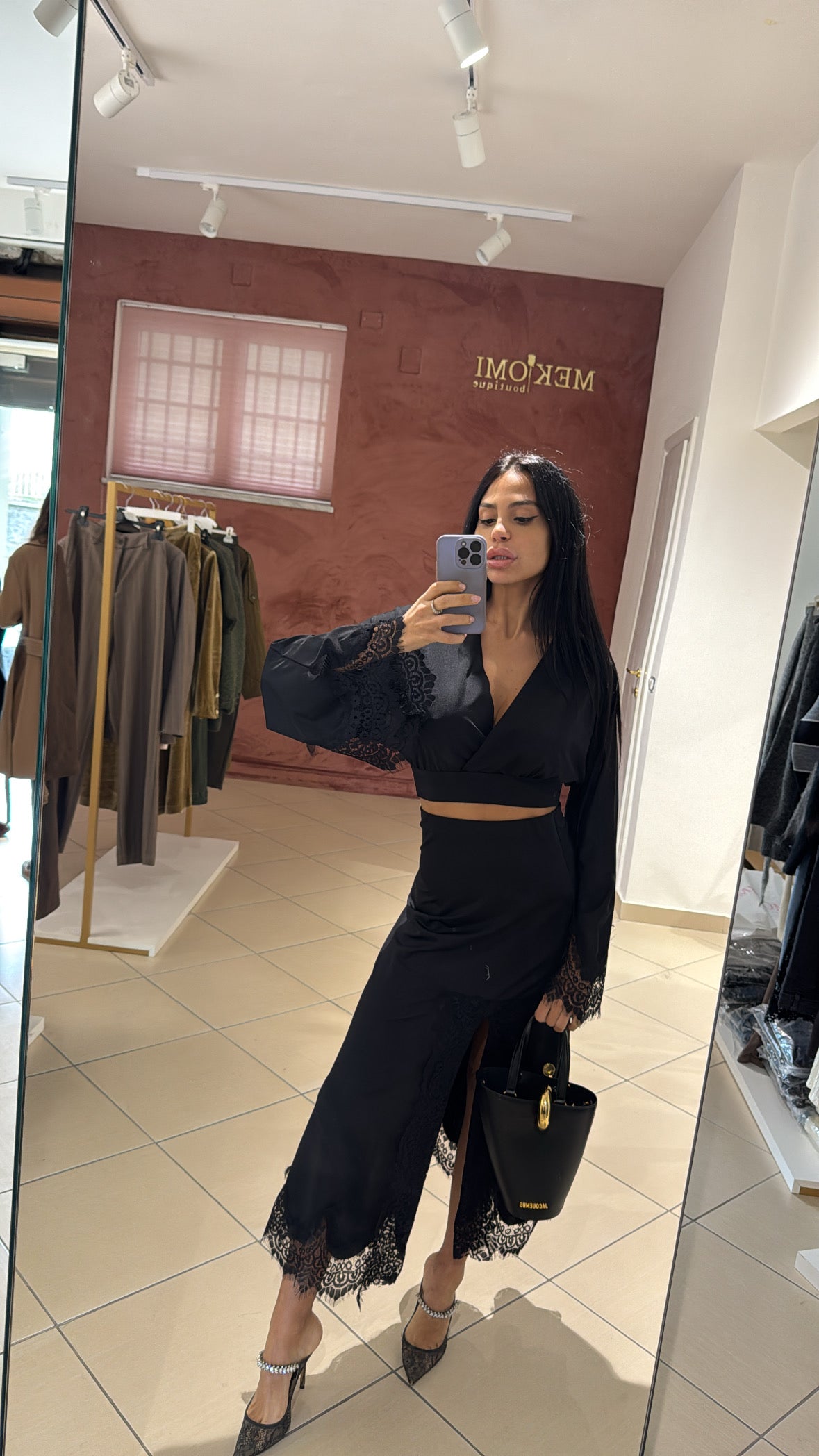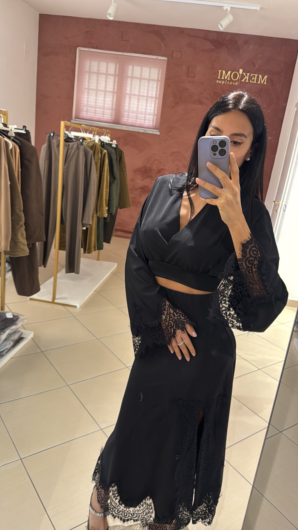 Coordinato composto da camicia e gonna in licra serata