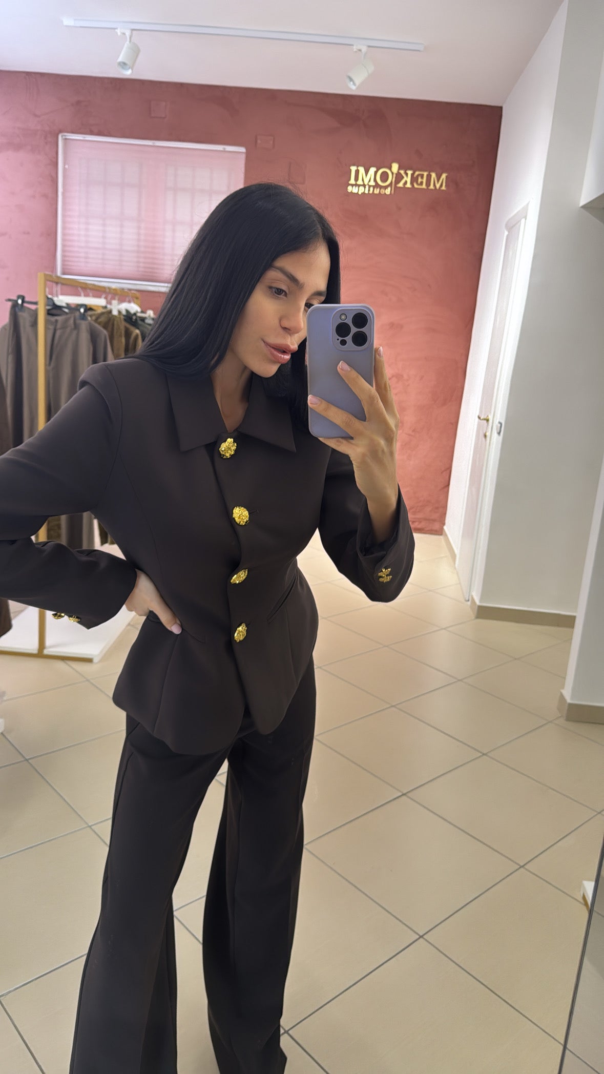 Tailleur due pezzi blazer e pantaloni dritti caffè